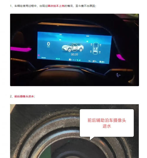 设计缺陷:冷车刹停异响、车机黑屏、鲨鱼鳍天线漏水等故障频发;