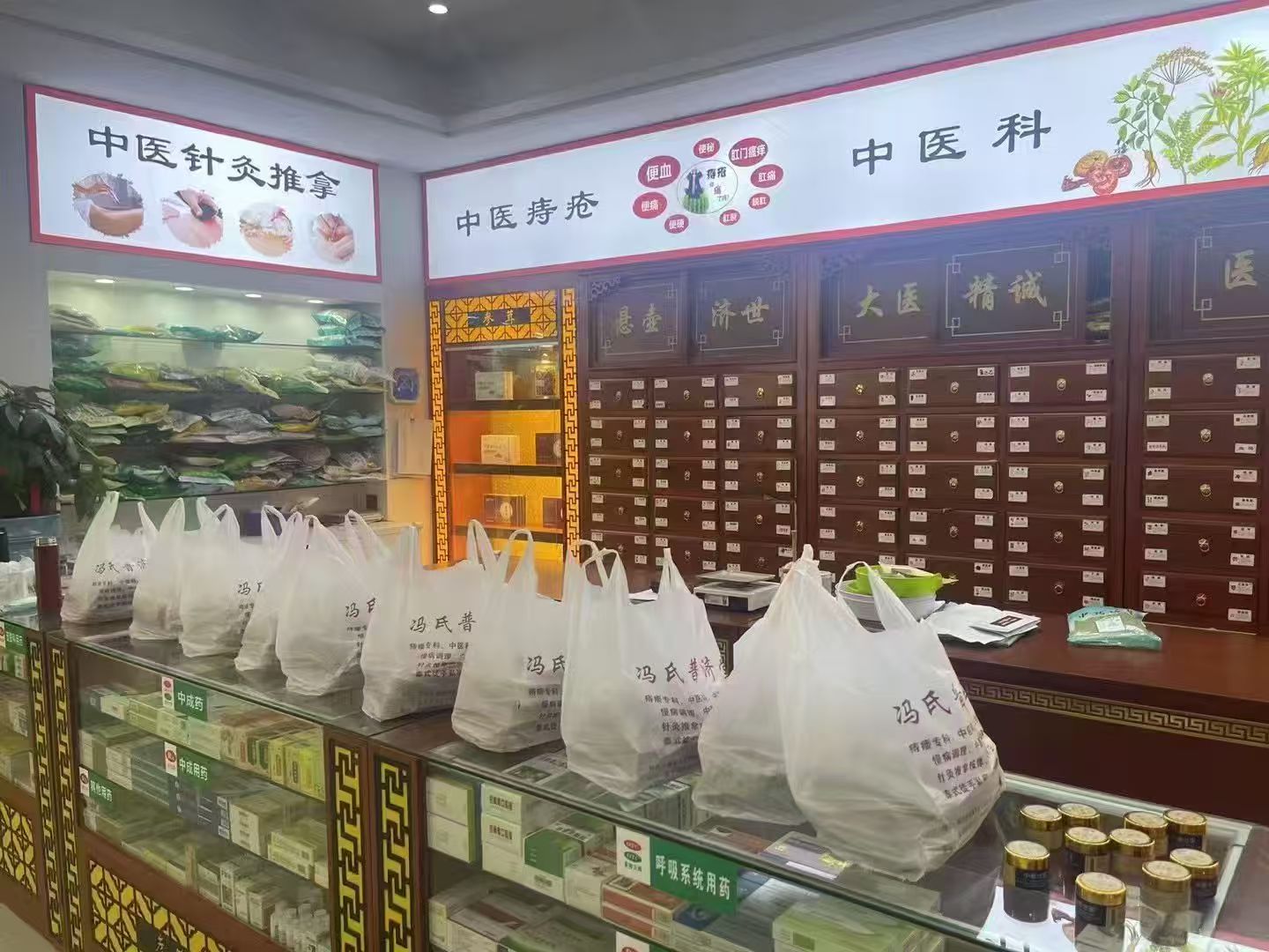 祖传秘方:冯氏珍珠丹粉、 冯氏珍珠丹液、 冯氏珍珠丹膜、 冯氏化痔丸 、 冯氏痔疮膏(地榆膏) 、冯氏坐浴散。